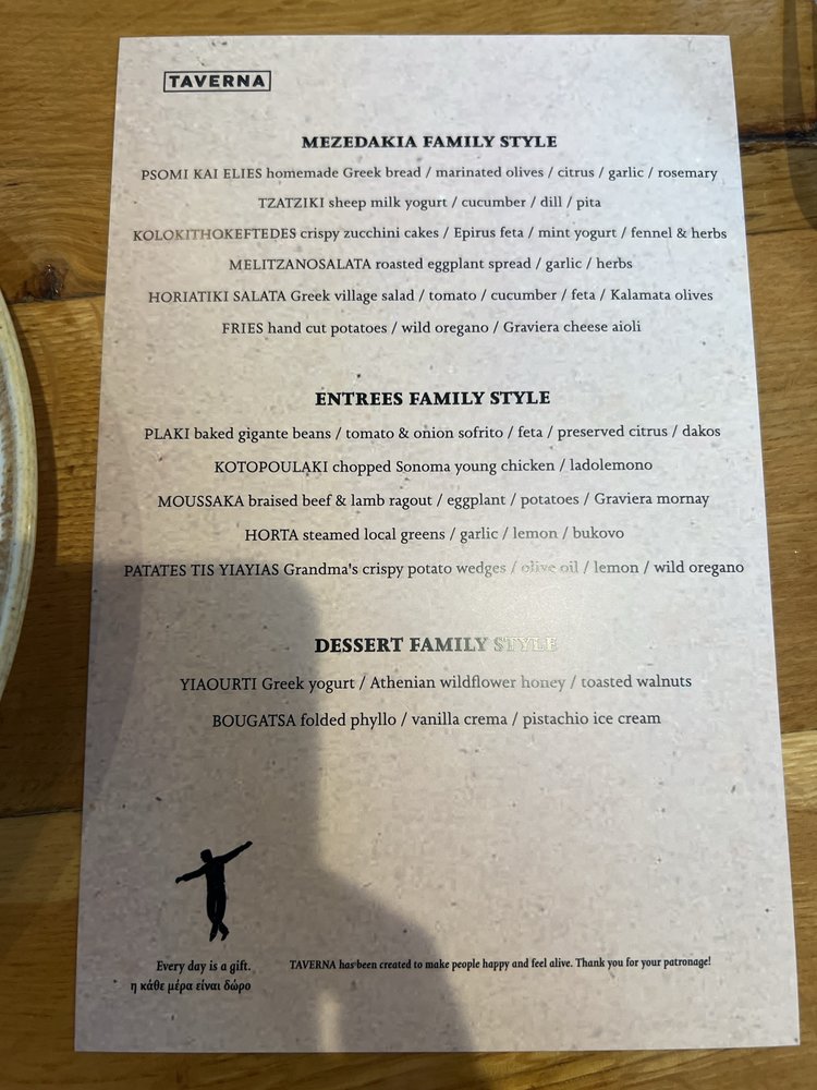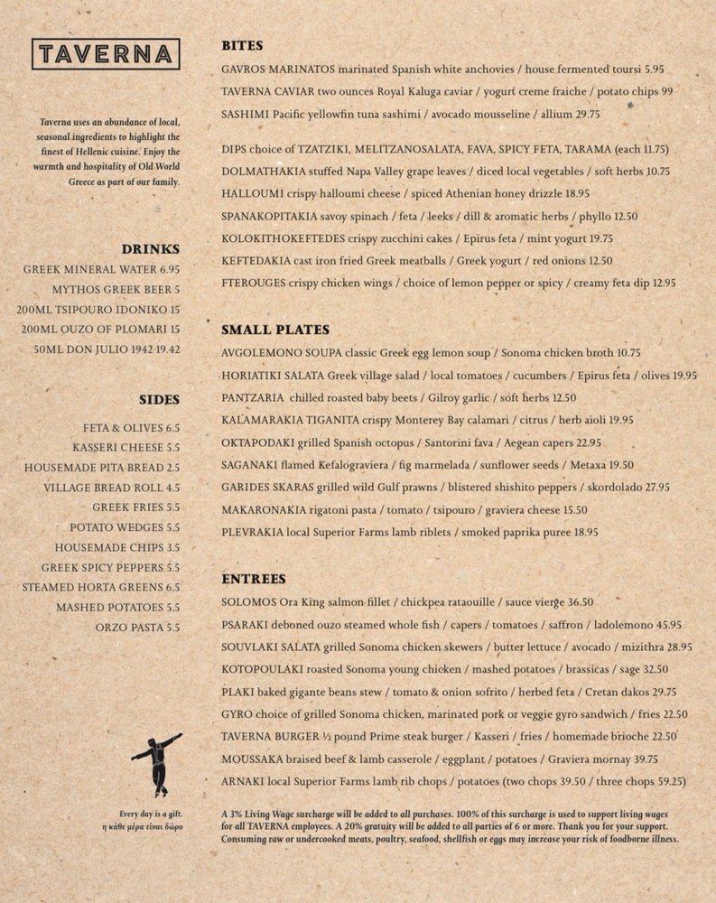 TAVERNA is a Greek restaurant located in Palo Alto, offering a trendy, romantic, and upscale dining experience. Known for its authentic Greek and Mediterranean cuisine, TAVERNA provides a variety of dishes, including Kantina Souvlaki and Gyro Wraps, Bites and Small Plates, and delicious Salads. Customer reviews highlight the flavorful Eggplant Spread, crispy Grandma's Potatoes, and delectable French toast. The ambiance at TAVERNA is described as warm and inviting, with rustic wooden tables and cozy Mediterranean accents. The service is attentive, with knowledgeable staff who are passionate about the menu. While prices are on the higher side, the quality of food and dining experience justifies the cost, making TAVERNA a standout choice for special occasions or memorable meals. Overall, TAVERNA offers a delightful and sophisticated dining experience, perfect for enjoying authentic Hellenic cuisine in a charming setting.